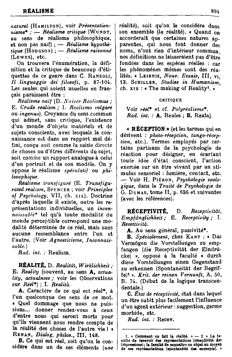 Lalande, A. (2010/1993). Vocabulaire technique et critique de la philosophie (3e éd.). Presse Universitaire de France, Quadrige.