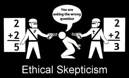 Le scepticisme éthique n’est au fond qu’une réhabilitation du scepticisme authentique. Le qualificatif éthique ne prétend pas ici à la vertu : il n’est pas question d’éthique normative ou de vantardise personnelle de moralité — l’éthique s’opposant d’ailleurs à la vertu ostentatoire, car un tel costume d’apparat est souvent adopté comme moyen de tromperie. Ce qualificatif vise juste à marquer une différence avec le prétendu « scepticisme » popularisé par les pseudo-sceptiques syndiqués, qui ont galvaudé ce vocable à force de s’en réclamer.