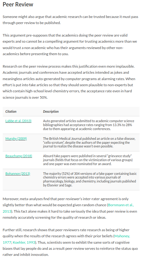 “we have little evidence on the effectiveness of peer review, but we have considerable evidence on its defects” (Smith, 2006, p. 179).